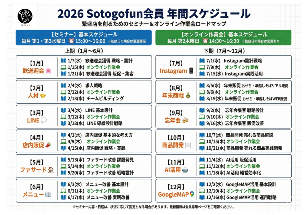 会員制コミュニティ Sotogo funは飲食店で働くパート・アルバイト・社員・店長・経営者が笑顔で楽しく働けるために役立つ情報・ノウハウや待遇・収益改善を学ぶコミュニティです。