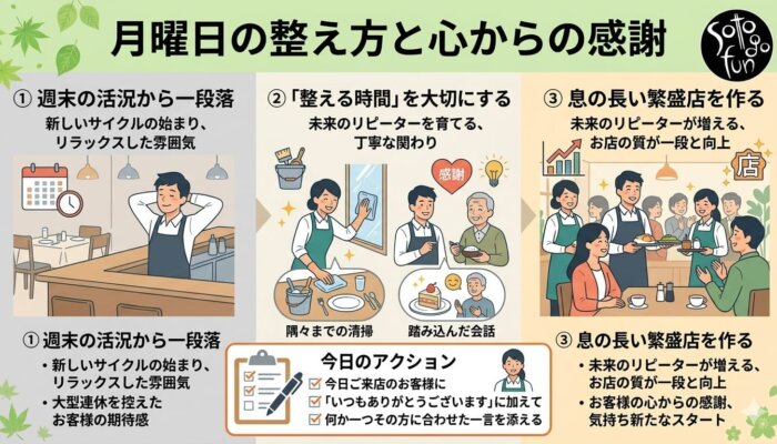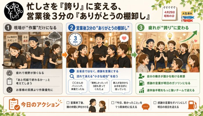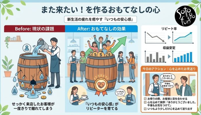 会員制コミュニティ Sotogo funは飲食店で働くパート・アルバイト・社員・店長・経営者が笑顔で楽しく働けるために役立つ情報・ノウハウや待遇・収益改善を学び、コンサルタントに相談ができるコミュニティです。