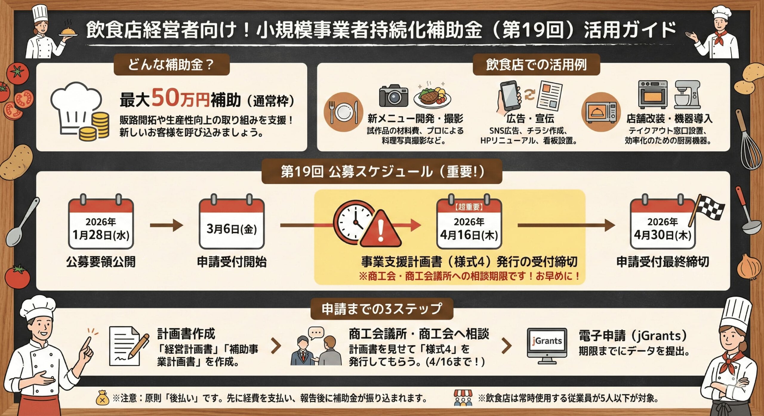 最大50万円の支援を受けられる「小規模事業者持続化補助金(第19回)」です。