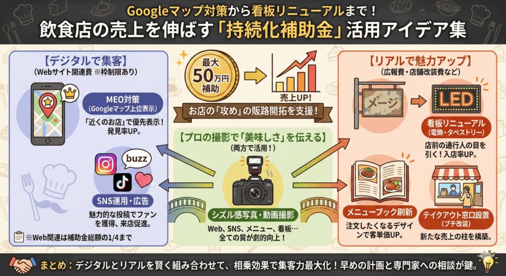 Googleマップ対策から看板リニューアルまで!飲食店の売上を伸ばす「持続化補助金」活用アイデア集