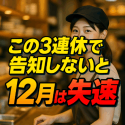 この3連休で「告知」しないと12月は失速します